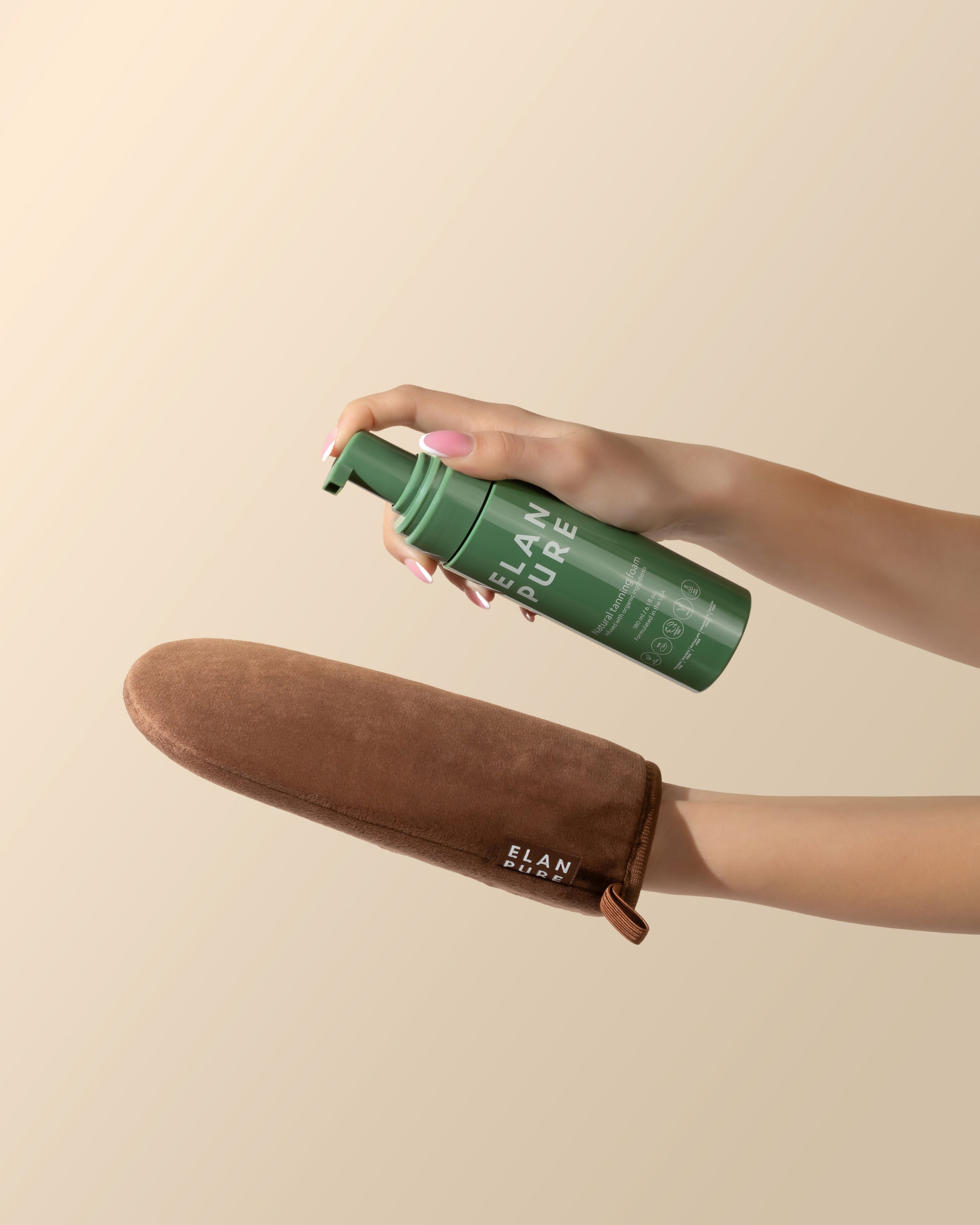 Spray 2–4 pumps directly onto your Élan Pure Tanning Brush.