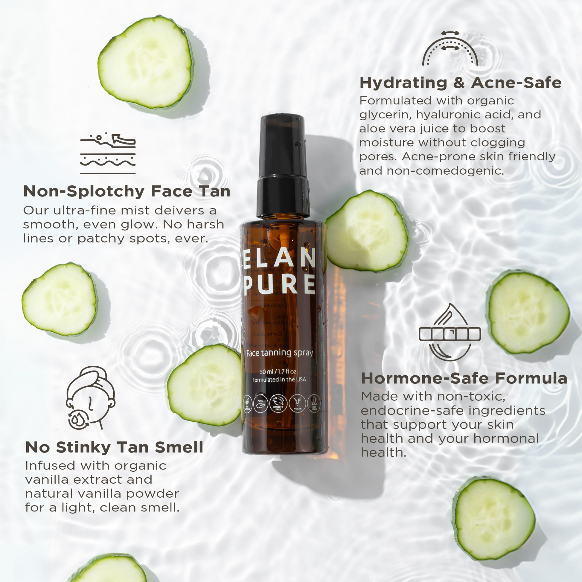 This lightweight, hydrating Face Tanning Mist is packed with nourishing, non-toxic ingredients and designed to fit seamlessly into your skincare routine. Made with skin-friendly, hormone-safe ingredients, it builds a natural-looking glow.